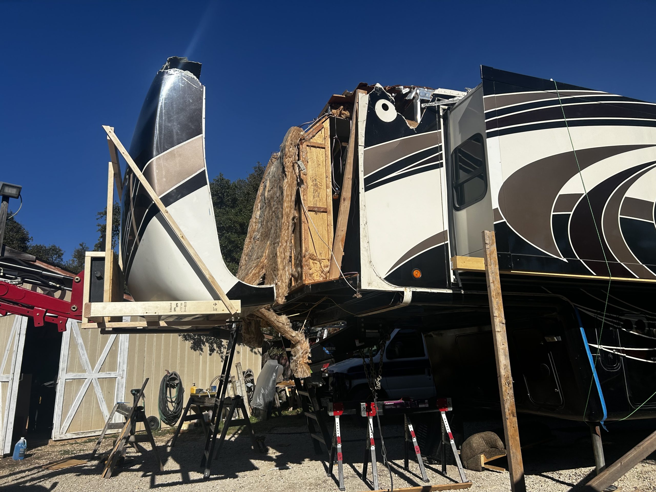 Repair to structure of RV due to water damage or impact damage. Rebuilding of slide outs, floor, wall, roof damage, etc.
